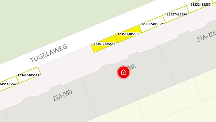 Twee parkeerplaatsen ter hoogte van perceel Tugelaweg 24 (parkeervaknummers 123517485550 en 123512485548) aan te wijzen voor het opladen van elektrische voertuigen door het plaatsen van een bord conform model E8c van Bijlage I van het RVV 1990, gecombineerd met onderbord OB504 met daarop afgebeeld twee pijlen op een hoek van 45° (RVV 1990).