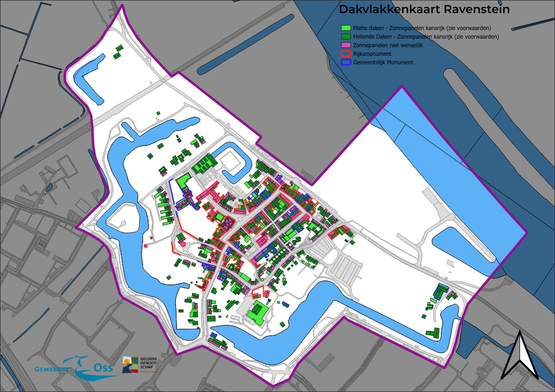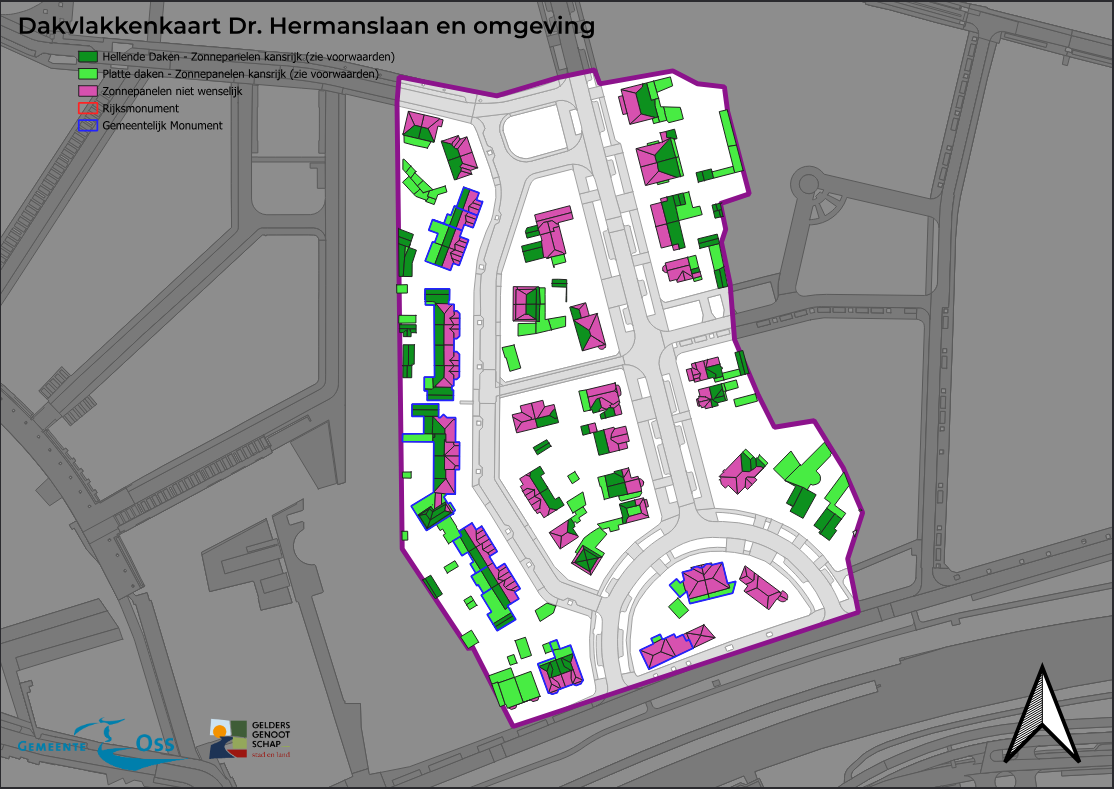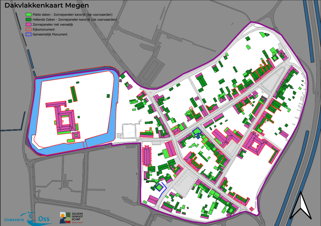 Dakvlakkenkaart voor zonnepanelen in beschermde stadsgezichten Oss