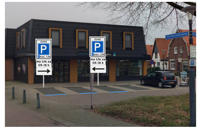 Om de bereikbaarheid en toegankelijkheid voor kortparkeerders te waarborgen, wordt op drie parkeerplaatsen aan de voorzijde van de Mitra een parkeerschijfzone ingesteld. De parkeerschijfzone geldt van maandag t/m zaterdag, van 9.00 uur t/m 18.00 uur. Dit om de bereikbaarheid van langparkeerders, zoals bewoners en werknemers, niet onnodig te beperken. De in te stellen maximale parkeerduur bedraagt 1,5 uur, aangezien voor een bezoek aan de Mitra of omliggende functies doorgaans niet langer dan 1,5 uur nodig is. Bovenstaande werkingsduur sluit bovendien aan bij andere parkeerschijfzones in Lichtenvoorde. Het instellen van de parkeerschijfzone wordt gerealiseerd door het plaatsen van borden E10 van bijlage 1 van het RVV 1990, onderborden met de tekst ‘ma t/m za 09-18 h’ en pijlen waaruit blijkt op welke parkeerplaatsen de parkeerschijfzone van toepassing is.
