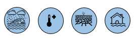 Figuur 1. Gevolgen van wateroverlast, hitte, droogte en een overstroming