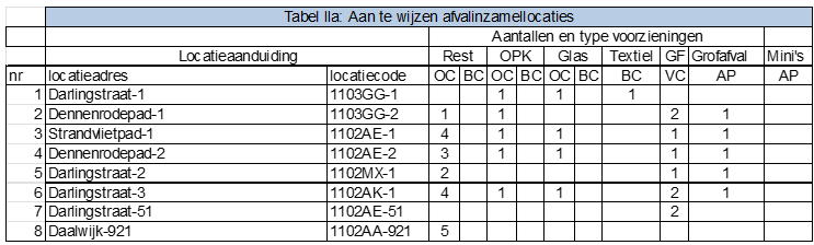 Tabel IIc-1: te wijzigen afval inzamellocaties vóór wijziging