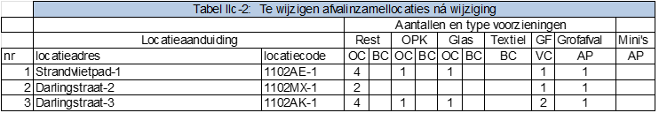 Tabel IIc-2 te wijzigen afval inzamellocaties ná wijziging