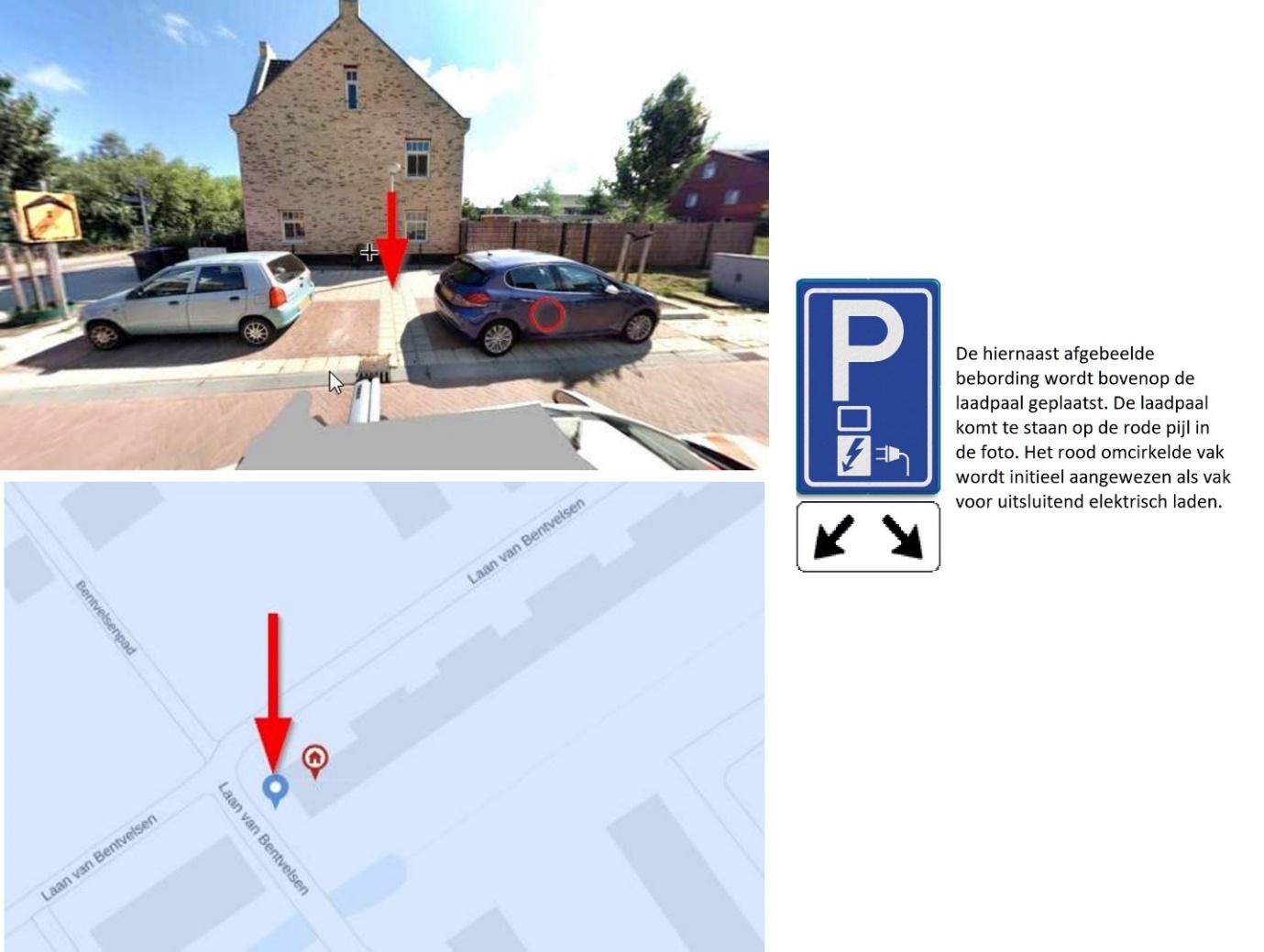 een dergelijke laadpaal onder meer gerealiseerd kan worden door de inrichting van de parkeerplaatsen bij de Laan van Bentvelsen ter hoogte van huisnummer 24;