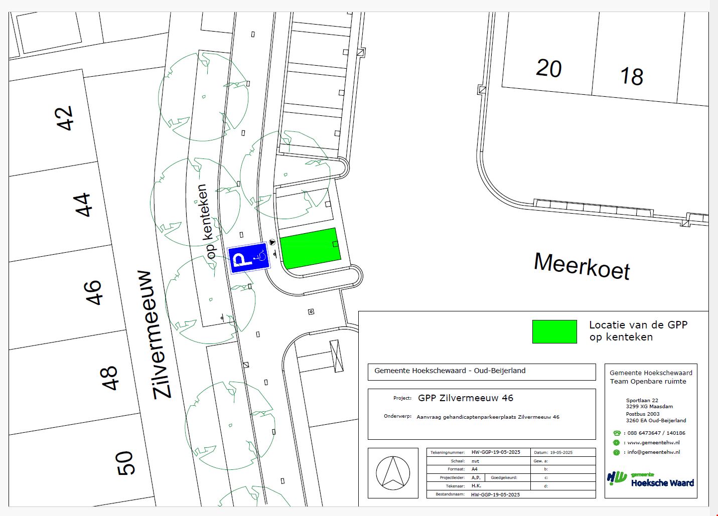 op het parkeerterrein tegen over de woning Zilvermeeuw 46 in Oud-Beijerland een gehandicaptenparkeerplaats op kenteken in te richten;
