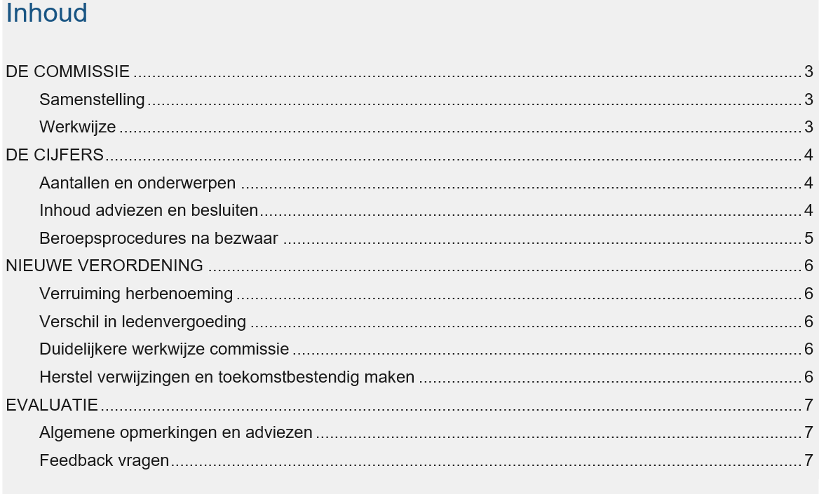 De commissie evalueert jaarlijks samen over de (inrichting van de) bezwaarprocedures van het afgelopen jaar. Tijdens deze evaluatie worden de meest opvallende onderwerpen besproken en worden eventuele verbeterpunten voor de bestuursorganen opgesteld. In deze paragraaf staat het verslag hiervan.