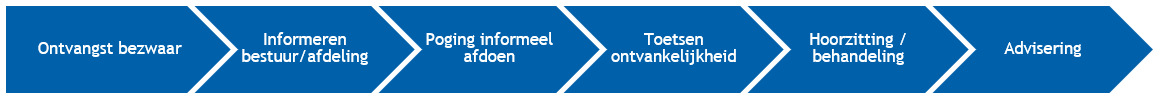 Een belanghebbende kan bezwaar maken tegen een besluit. Bij ontvangst van een bezwaarschrift onderzoekt de behandelend ambtenaar op verzoek van de secretaris of het bezwaar kan worden weggenomen. Als dat niet het geval is, wordt het bezwaarschrift doorgaans op een hoorzitting behandeld. Daarna brengt de commissie een advies uit aan het bestuursorgaan.