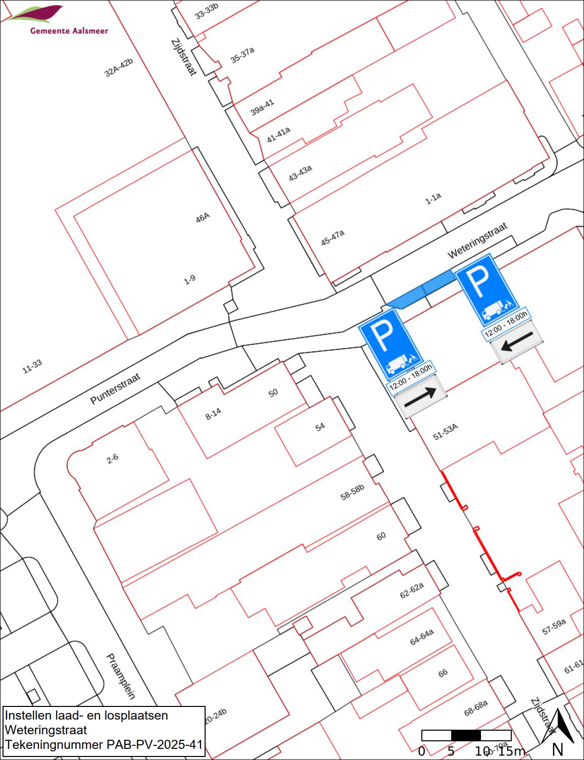 Burgemeester en wethouders van Aalsmeer besluiten om twee gelegenheden bestemd voor het onmiddellijk laden en lossen aan te wijzen in de Weteringstraat op twee reguliere parkeerplaatsen nabij de kruising met de Zijdstraat. De parkeerplaatsen worden bestemd als laad- en losplaats tussen de 12:00 uur en 18:00 uur. Buiten deze tijdsperiode zijn de parkeerplaatsen als reguliere parkeerplaats te gebruiken.