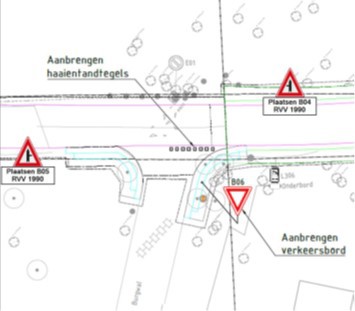 deze voorrangsregeling kan geschieden door het plaatsen van haaientanden en verkeersbord B06 uit bijlage I van het Reglement Verkeersregels en Verkeerstekens 1990 (RVV 1990);