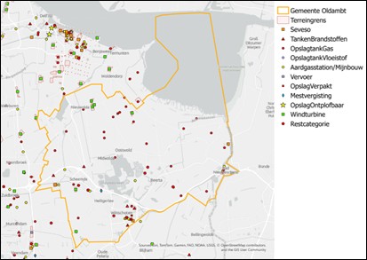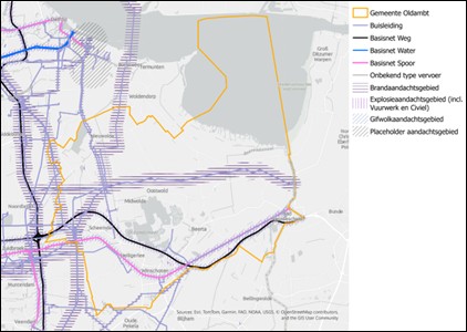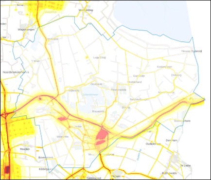 Bij elkaar opgetelde geluidsniveau van verschillende bronnen in de gemeente Oldambt (bron: Atlas leefomgeving)