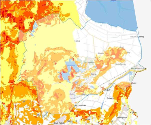 Uit het onderzoeksrapport ‘De hittebestendige stad’ blijkt dat het essentieel is dat er binnen een straal van 300 meter van elke woning een koele plek beschikbaar is. In de huidige situatie voldoen de dorpskernen in de gemeente Oldambt bijna helemaal aan deze afstand. In Winschoten zijn er ook plekken waar de afstand tot koelte net wat groter is.