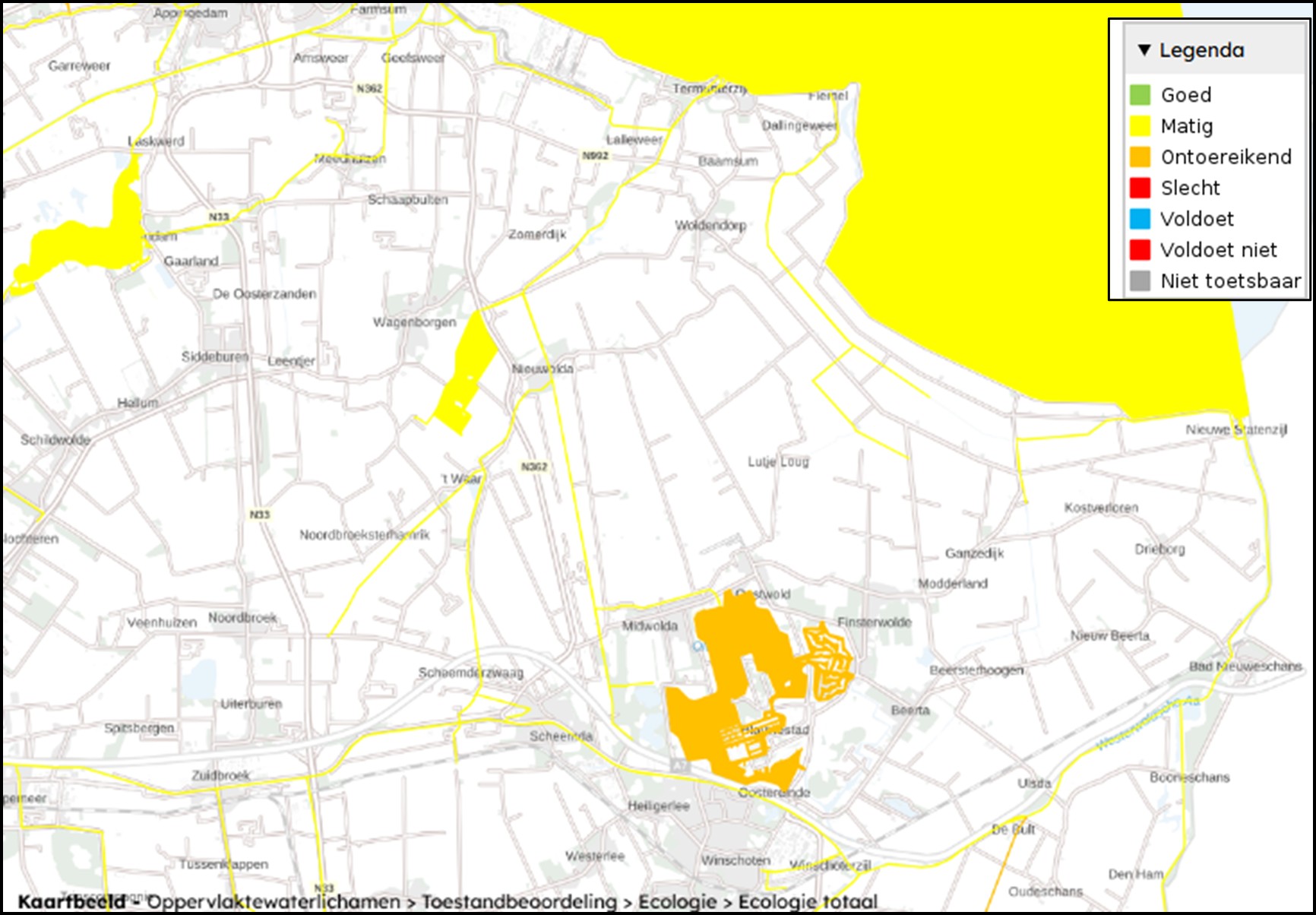 Waterkwaliteit KRW-wateren, boven chemie, onder ecologie (bron Informatiehuis Water)