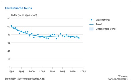 Afname fauna van het land in Nederland (bron: CBS, december 2024)