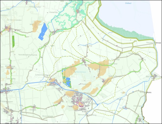 Overzicht NNN-gebieden in en rond de gemeente Oldambt (bron: Natuurbeheerplan Groningen)