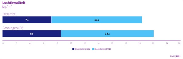 Luchtkwaliteit Oldambt vergeleken met provincie Groningen (bron: RIVM)
