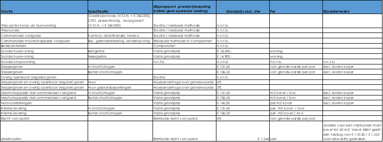 Voor de volgende te realiseren functies wordt primair getaxeerd op basis van de residuele grondwaardemethode: