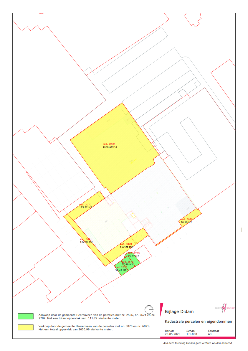 In een anterieure overeenkomst reeds is overeengekomen om 1.770 m2 gemeentegrond te verkopen ten behoeve van de ontwikkeling.