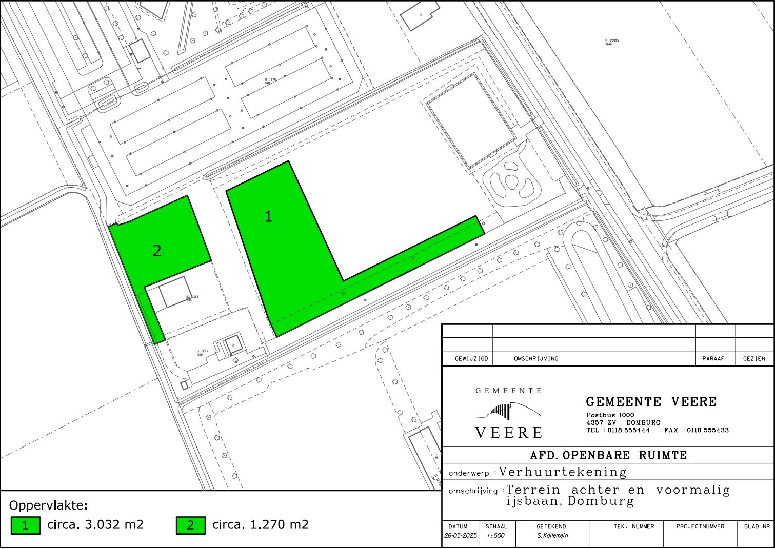 De gemeente Veere heeft het voornemen om twee groenstroken van het perceel, gelegen nabij de Roosjesweg te Domburg, kadastraal bekend gemeente Domburg, sectie G nummer 1425, te verhuren aan de aangrenzende perceelseigenaren. De te verhuren groenstroken zijn in het groen weergegeven op bijgaande verhuurtekening.