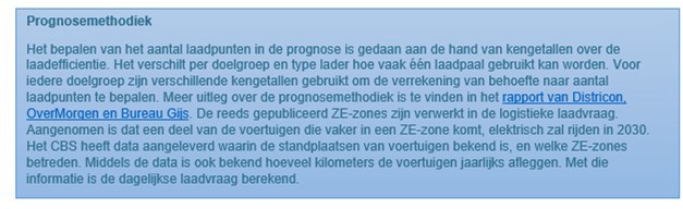 De prognosecijfers zijn ook ruimtelijk in beeld gebracht, wat met name relevant is om de laadvraag geconcentreerd op bedrijventerreinen in beeld te brengen. Vanuit de gemeentelijke contacten met (grote) ondernemers in deze gebieden is het beeld dat deze cijfers een onderschatting zijn van de werkelijke vermogensvraag. Het is dan ook de vraag of de netverzwaringsplannen van Liander voldoende rekening hebben gehouden met de daadwerkelijke ontwikkelingen op de bedrijventerreinen. Om Liander van correcte input te kunnen voorzien is het daarom wenselijk om dit aan te scherpen. Hiervoor is het nodig dat er een inschatting gemaakt wordt van de elektrificatie- en oplaadplannen van de bedrijven met de grootste logistieke vloten, en dan in het bijzonder de zwaardere categorieën vrachtvoertuigen (N2/N3), welke afhankelijk zijn van snelladers om in één nacht weer volledig op te kunnen laden. Via de accounthouders van de gemeente, die al contact hebben met deze bedrijven, kan deze informatie betrekkelijk eenvoudig op hoofdlijnen opgehaald worden. Met deze informatie kan Liander in staat gesteld worden haar investeringsplannen verder te verbeteren zodat netcongestie in de toekomst vermeden kan worden.