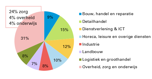 Ten opzichte van de regio zijn zorg en detailhandel kenmerkend