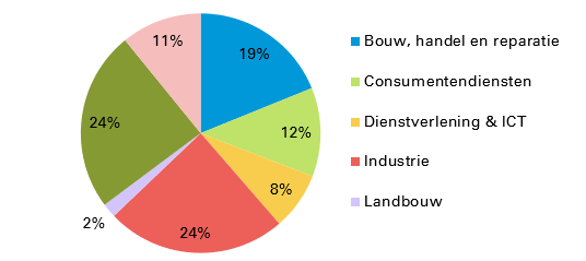 Bron: IBIS (2022), bewerking Stec Groep - detailhandel en horeca, leisure en overige diensten zijn vanwege beperkte omvang gebundeld tot consumentendiensten.