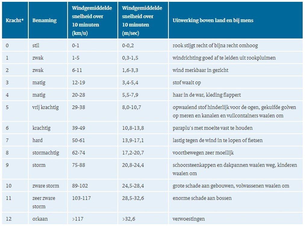 Zie bijlagen 1 en 2 bij dit stormprotocol voor een toelichting op de ‘Windschaal van Beaufort’ (hierna: Bft) en de ‘Weerwaarschuwingen’ conform het Koninklijk Nederlands Meteorologisch Instituut (hierna: KNMI).