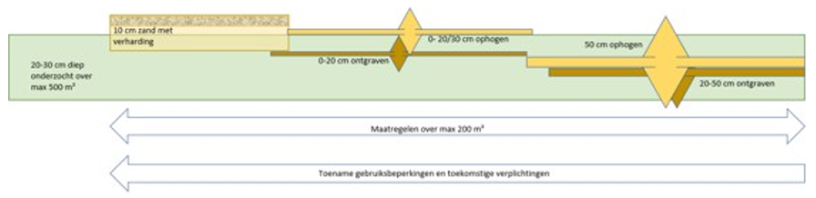 Maatregel: Een maatregel neemt risico’s weg. Een maatregel kan variëren van gebruiksadviezen tot een leeflaag van een bepaalde dikte. Bij normaal gebruik kunnen weer risico’s ontstaan, bijvoorbeeld bij plantwerkzaamheden in een leeflaag van 20 cm dik. Opvolging van gebruiksadviezen blijft dan van belang.