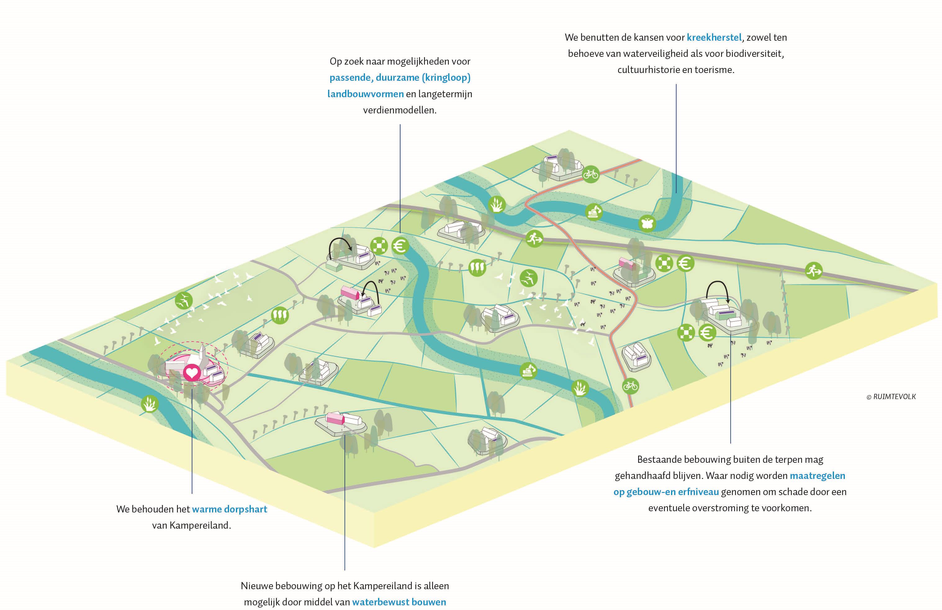 Omgevingsvisie Kampen is tot stand gekomen in samenwerking met de gemeente Kampen en opgesteld door bureau RUIMTEVOLK. Het copyright van de beelden, kaarten en foto’s berust bij RUIMTEVOLK tenzij anders aangegeven. Hoewel aan de inhoud en samenstelling van dit rapport de grootst mogelijke zorg is besteed, is het mogelijk dat informatie onjuist of onvolledig is. RUIMTEVOLK en gemeente Kampen aanvaarden geen enkele aansprakelijkheid voor de volledigheid en juistheid van de gegeven informatie.