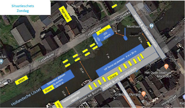 A. De binnenstad van Montfoort, van vrijdag 13 juni 2025 12:00 uur tot zondag 15 juni 21:00 uur af te sluiten voor al het autoverkeer, bromfietsers en fietsers door het plaatsen van een hek met C01 bord op de volgende locatie's: