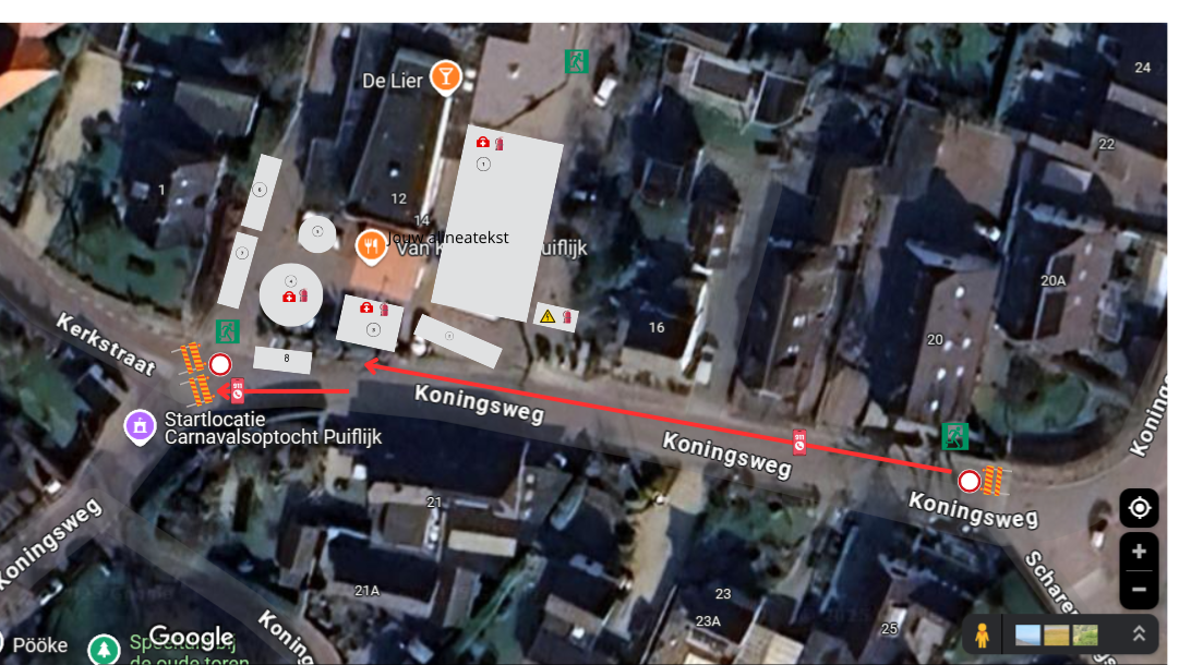 • een aantal dagen van tevoren de kermis moet worden opgebouwd en dus de Koningsweg, tussen de kruisingen Kerkstraat en Scharenburgsestraat, eerder moet worden afgesloten;