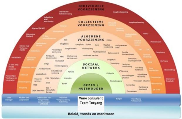 De gemeente Oldambt heeft ervoor gekozen om binnen het onderdeel maatschappelijke ondersteuning te werken met het onderstaande Regenboogmodel.