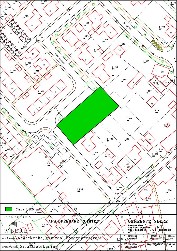 Porrenaerstraat (voormalige gymzaallocatie) te Aagtekerke, gemeente Veere, ter grootte van ongeveer 1.120 m2, thans nog deel uitmakende van het perceel kadastraal bekend gemeente Mariekerke, sectie I nummer 838; en