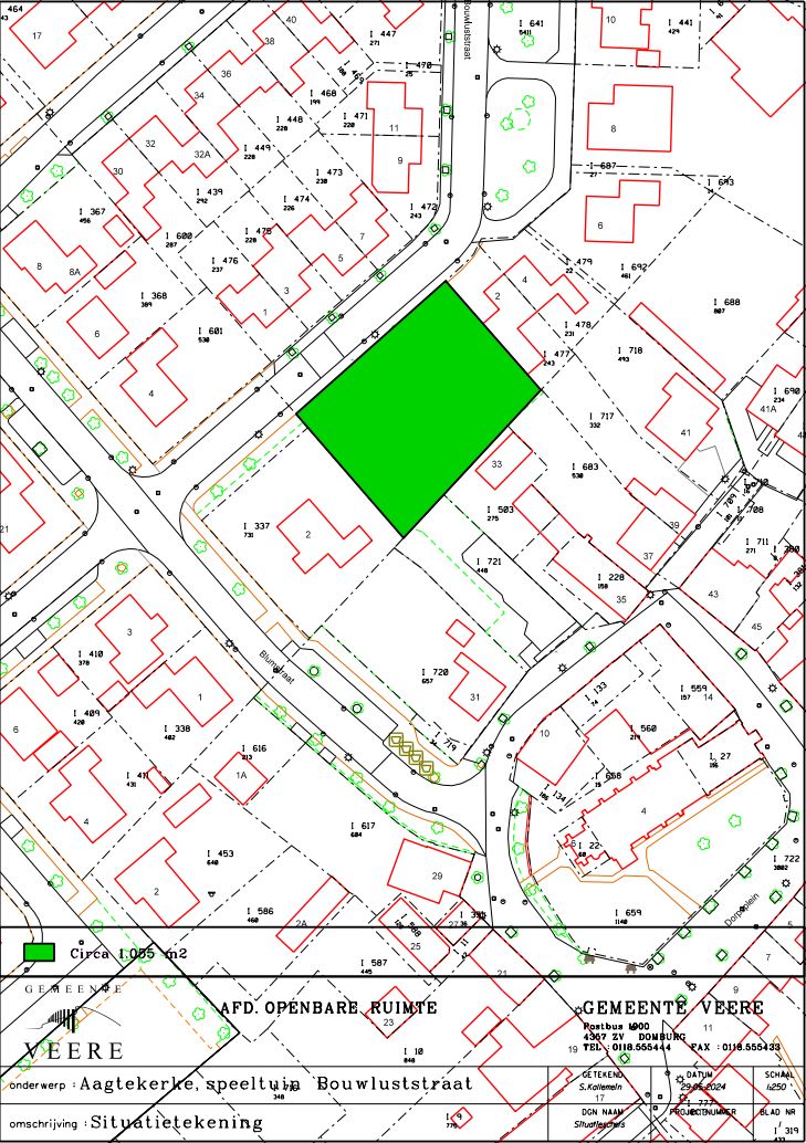 Bouwluststraat (voormalige speeltuinlocatie) te Aagtekerke, gemeente Veere, ter grootte van ongeveer 1.055 m2, thans nog deel uitmakende van het perceel kadastraal bekend gemeente Mariekerke, sectie I nummer 641;