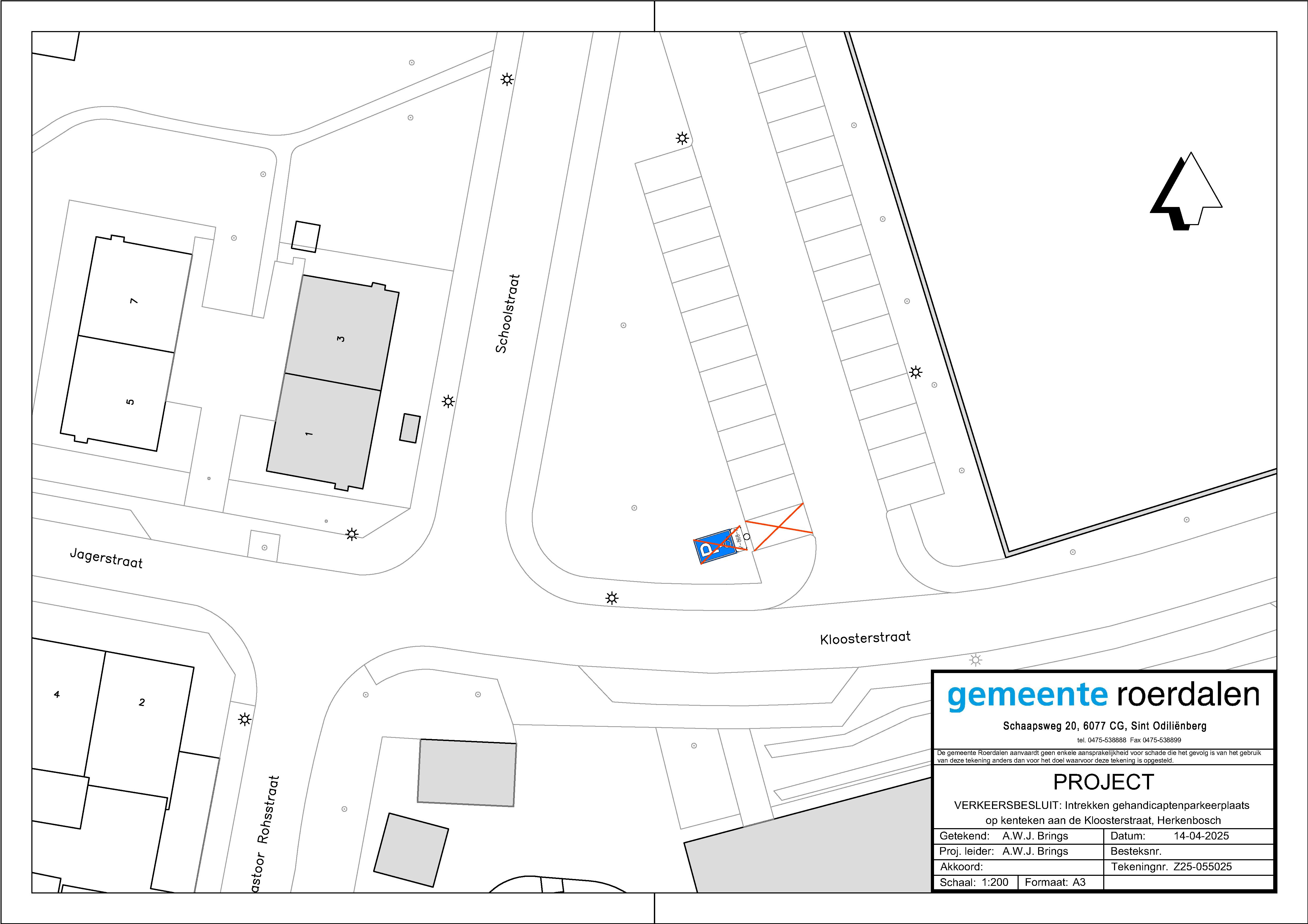 Verkeersbesluit: Intrekken gehandicaptenparkeerplaats op kenteken op de grote parkeerplaats aan de Kloosterstraat, Herkenbosch