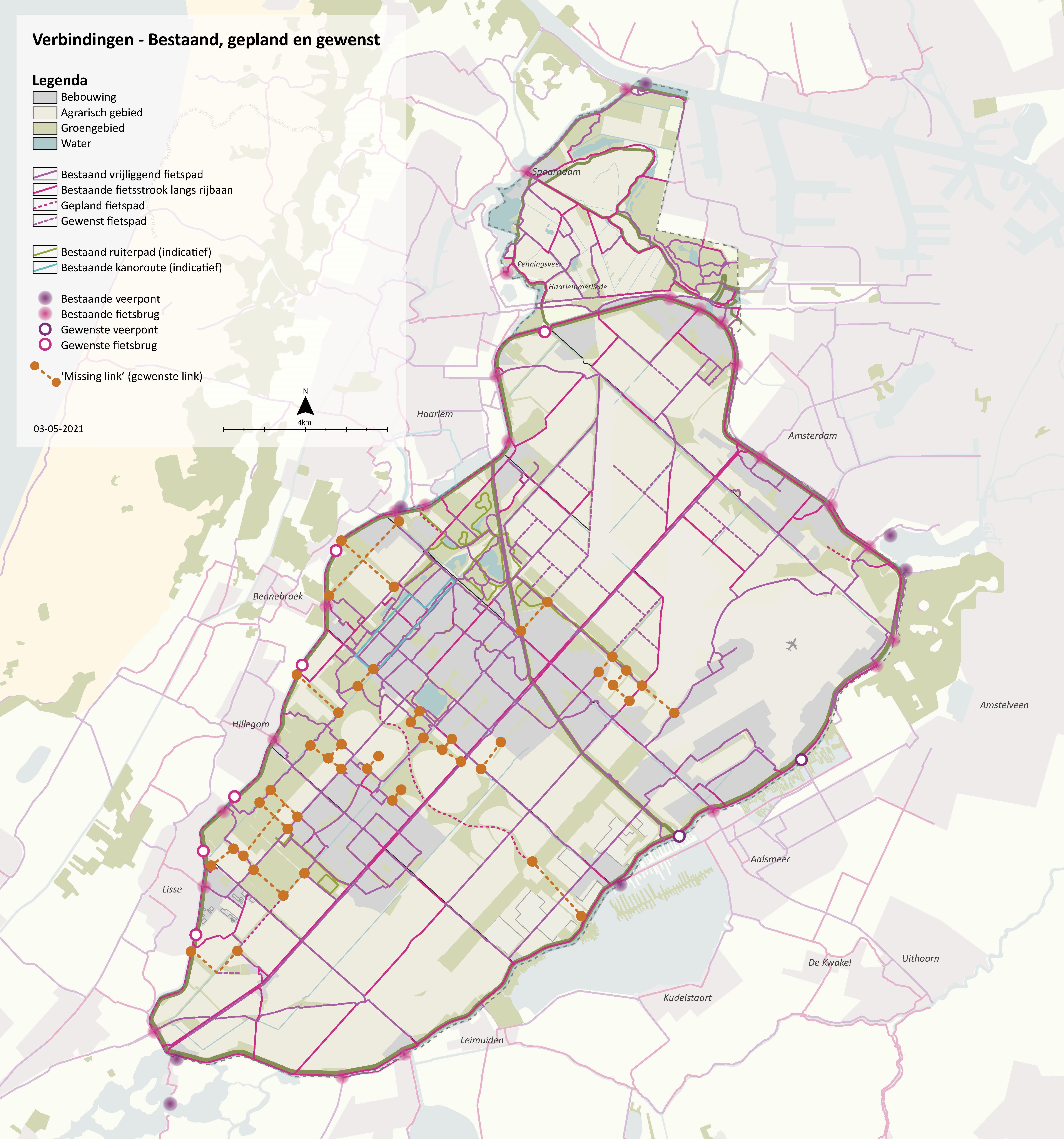 Fietsroutes en fietsverbindingen - Fietspaden - Fietsonderdoorgangen | Waaronder in elk geval: doorfietsroute Geniedijk, fietspad Nieuw-Vennep – Hoofddorp, fietsverbinding Schiphol Trade Park en Geniedijkpark |
