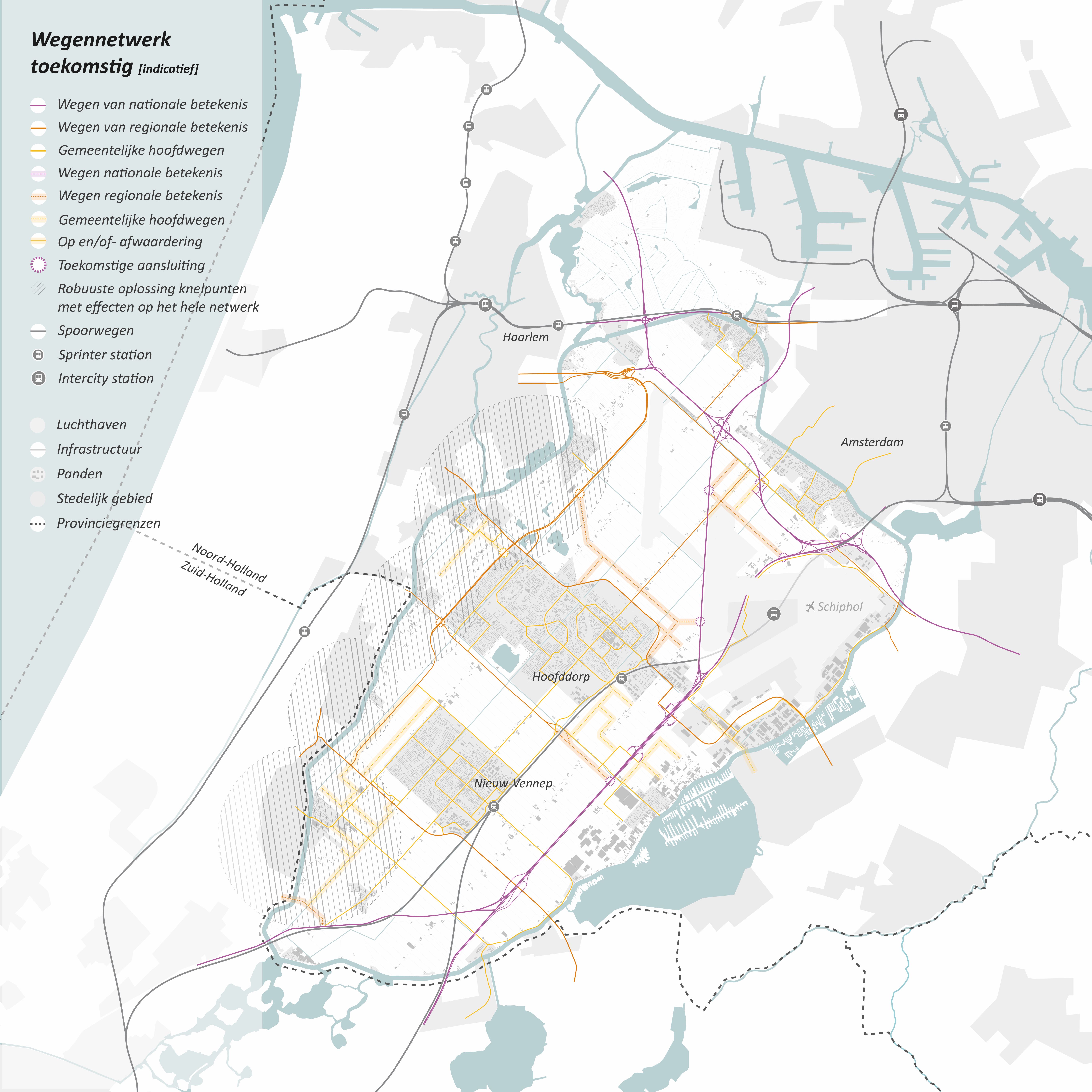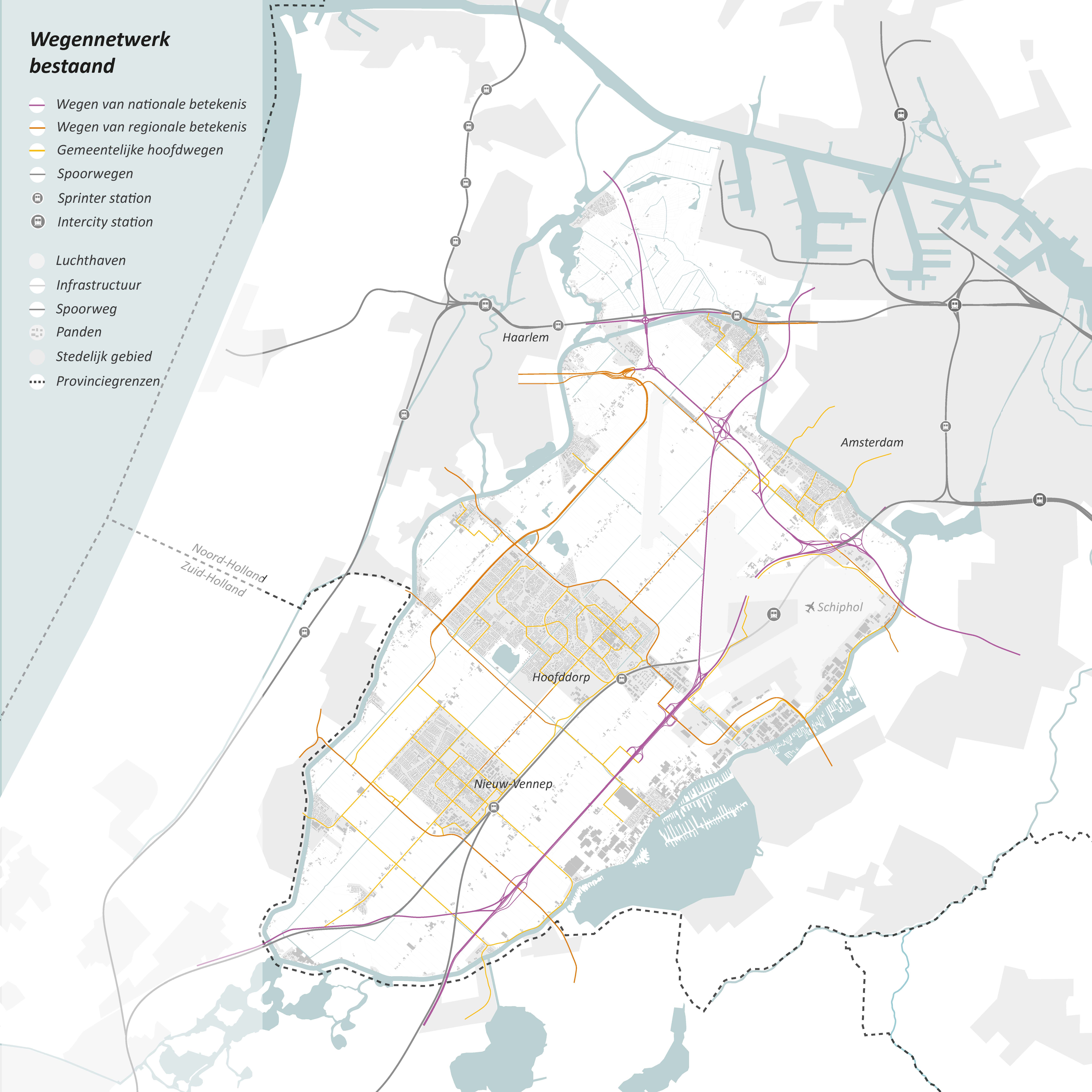 Nieuwe ontsluitingsstructuren - Aansluiting snelwegen - Interne hoofdstructuur - Bruggen | Waaronder in elk geval: Randweg Hoofddorp Zuid (verdubbeling Nieuwe Bennebroekerweg), functiewijziging Van Heuven Goedhartlaan |