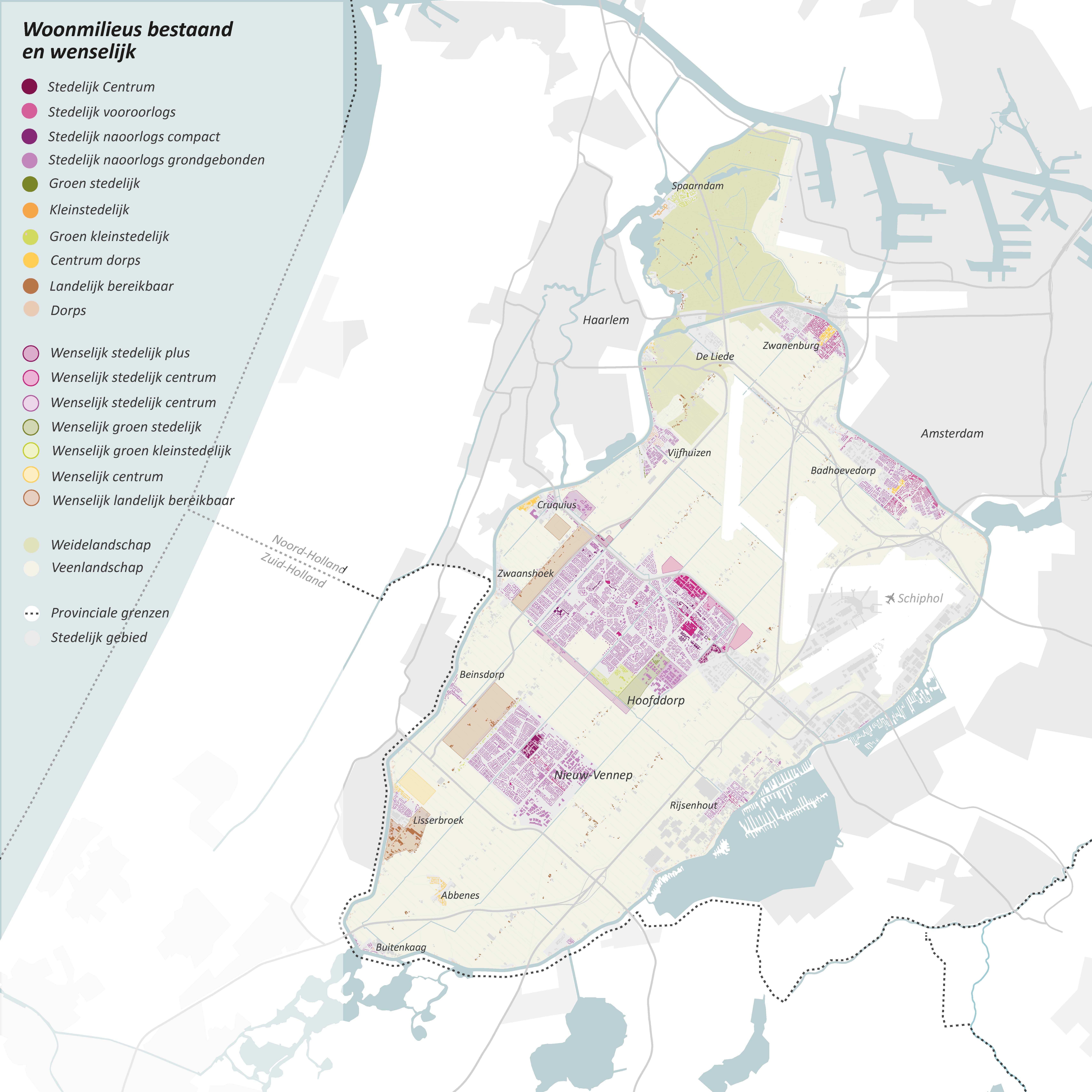 Dorp en stad komen op veel manieren samen in onze gemeente. Inwoners voelen zich soms zowel dorpeling als stedeling. Ruim twee derde van onze inwoners woont in de grotere kernen Hoofddorp en Nieuw-Vennep. Door de grote woningbehoefte en de gewenste economische ontwikkeling staat er veel druk op de ruimte. Daarom gaan we slim om met de beschikbare ruimte en gebruiken we deze ruimte voor meer functies (multifunctioneel).