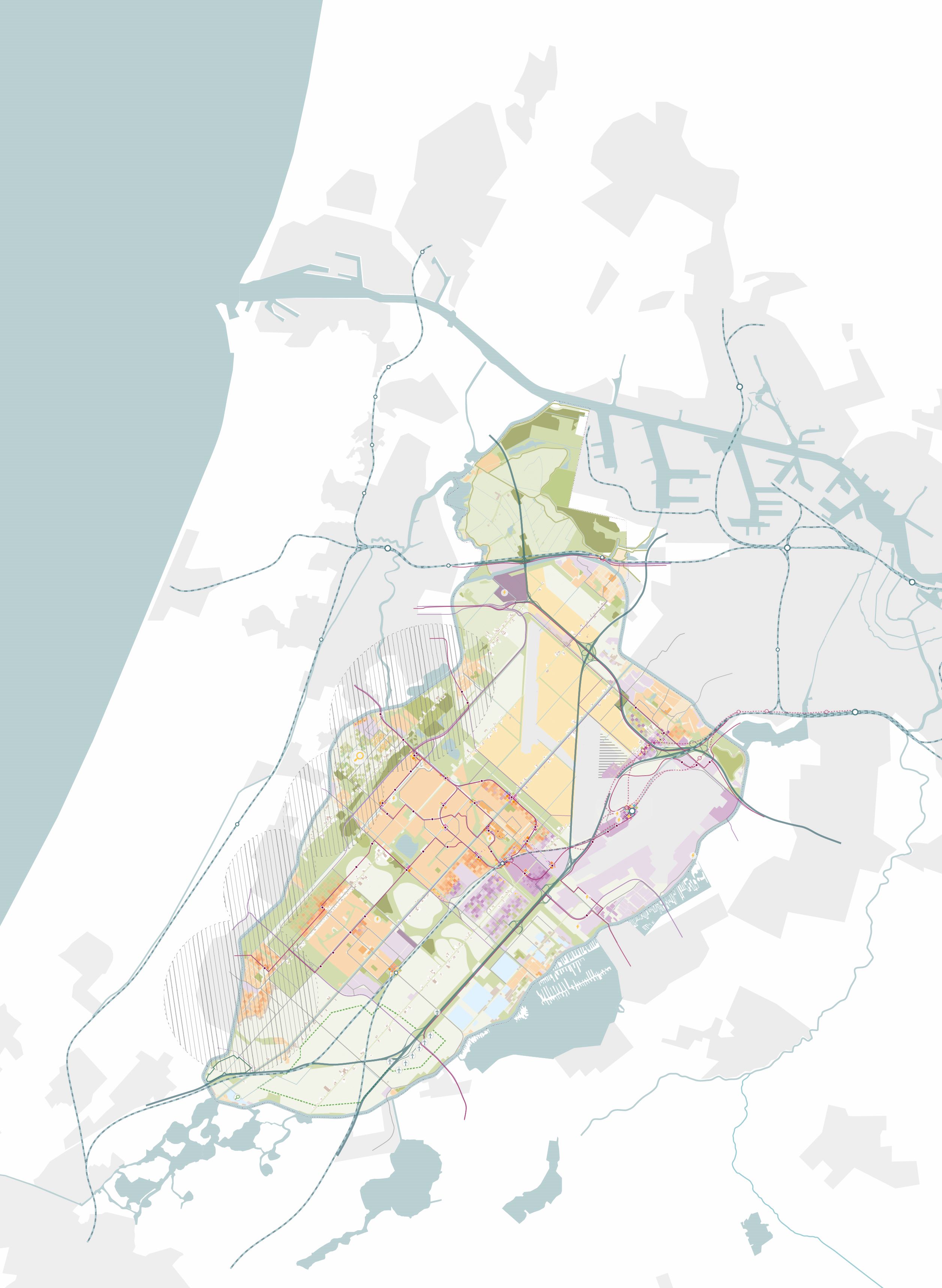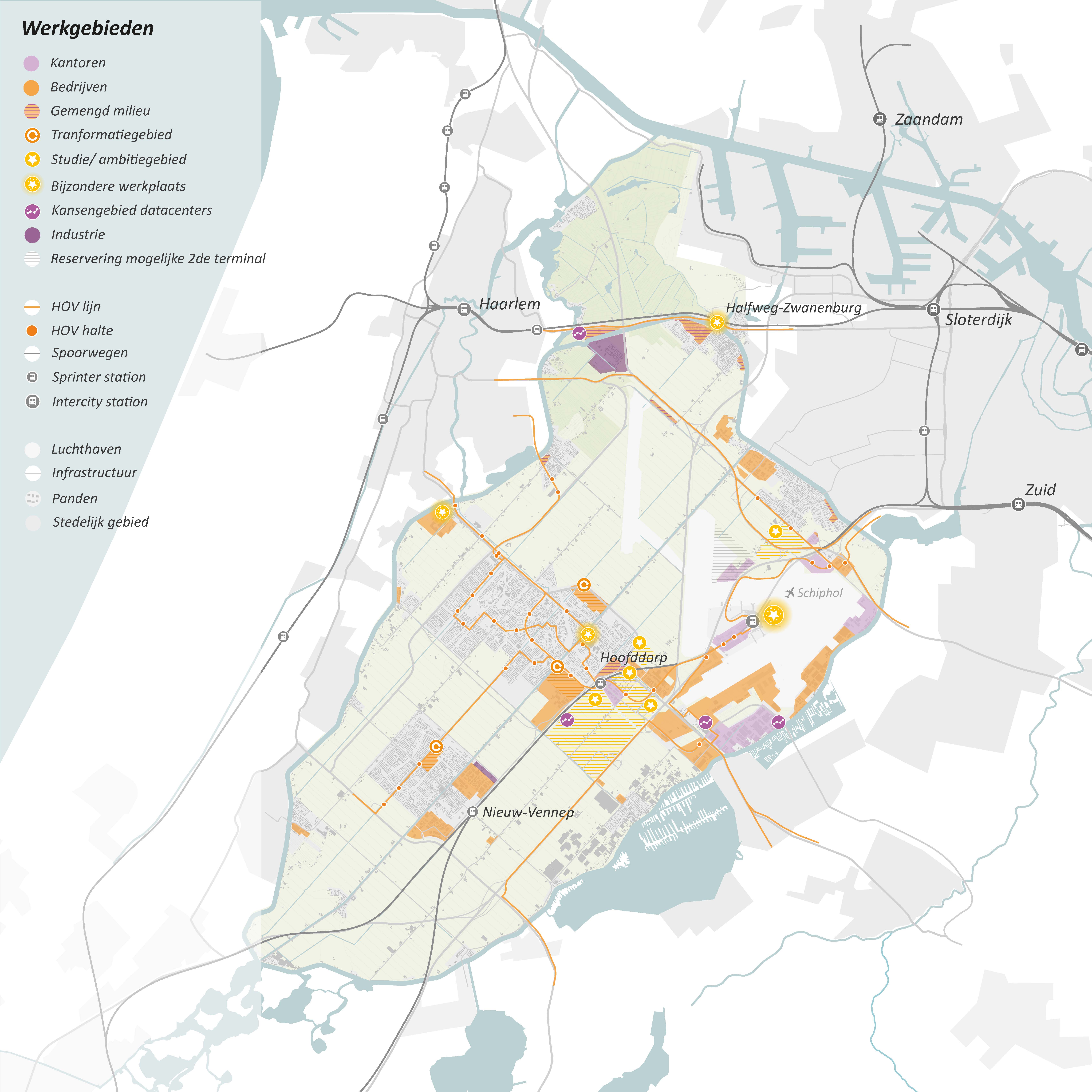 We willen slim, integraal en flexibel met dit gebied omgaan. We maken een plek met excellente bereikbaarheid - in alle vervoersmodaliteiten - en een hoogwaardig internationaal woon- en werkmilieu met een eigen identiteit, uitgaande van lokale kwaliteiten en kracht. Het zal een aantrekkelijke en prettige omgeving worden, aanvullend op en goed verbonden met het centrum van Hoofddorp, waarbij flexibiliteit en ruimte is om toekomstige ontwikkelingen zoals de inpassing van de metro een plek te geven. Dit zien we in samenhang met de land- en luchtzijdige ontwikkeling van de luchthaven.