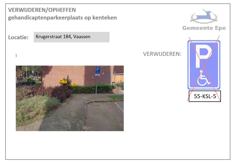 Hiermee de individuele gehandicaptenparkeerplaats opgeheven moet worden;
