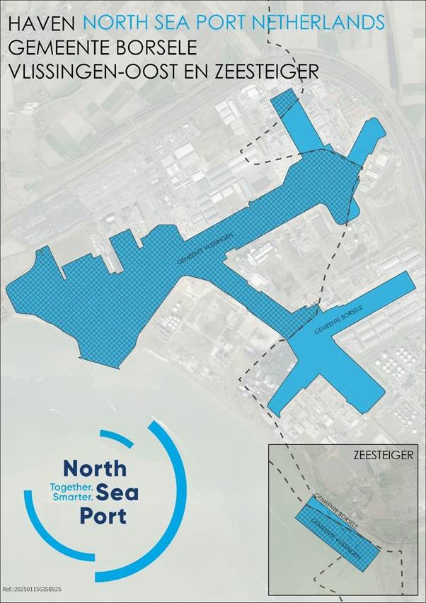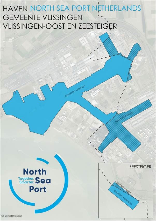 - haven: wateren, havens of vaarwegen alsmede alle tot deze wateren behorende kunstwerken, scheepshellingen, dokken, scheepswerven en los- en laadplaatsen binnen de gemeente {Borsele, Terneuzen, Vlissingen} die voor de scheepvaart openstaan zoals aangegeven op de kaarten in bijlage 1 bij deze verordening en welke in beheer zijn van North Sea Port Netherlands N.V.