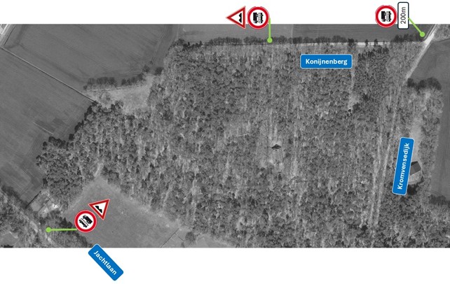 Het zuidelijk deel van de Konijnenberg onverhard is en niet geschikt voor hoge intensiteit dan wel zwaar verkeer.