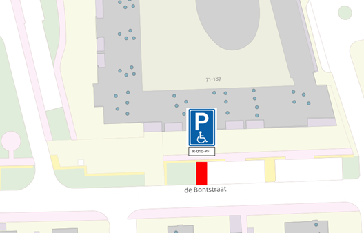 de gemeente heeft het verzoek ontvangen om een parkeerplaats nabij De Bontstraat 71 aan te wijzen als gehandicaptenparkeerplaats op kenteken;