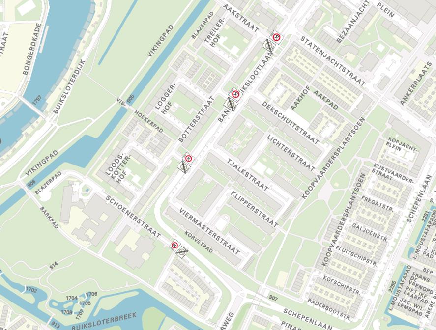 in het gebied ten westen en zuiden van de Banne Buikslootlaan de volgende straten liggen die zijn ingericht als erftoegangswegen: Aakstraat, Barkpad, Botterstraat, Loggerhof, Loodskotterhof, Schoenerstraat en Treilerhof;