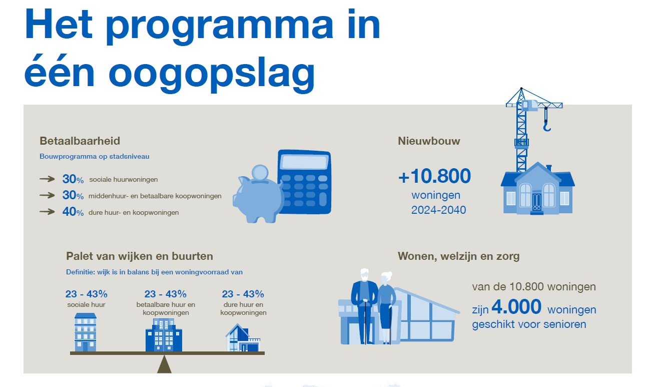Samen met woningcorporaties benutten we de mogelijkheden van optoppen, aanplakken en het uitplinten van bestaande gebouwen. Ook willen we, onder voorwaarden, innovatieve woonvormen zoals woningsplitsen en verkameren toestaan. We zetten ons in voor betaalbare huisvesting voor cruciale beroepsgroepen en andere aandachtsgroepen. Dit alles doen we in samenwerking met lokale, regionale en landelijke partners, want volkshuisvesting stopt niet bij onze stadsgrenzen.