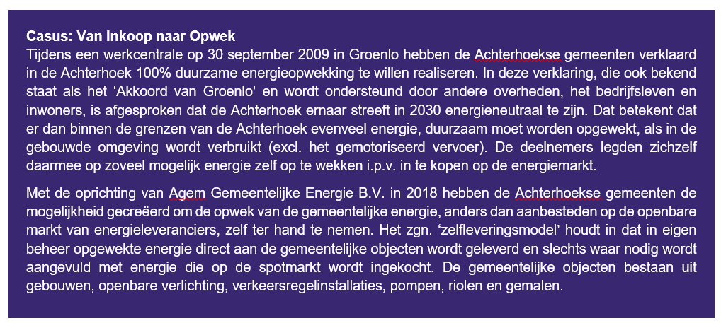 In het kader van de artikelgroepstrategie 24 wordt bij de inkoop van sommige artikelgroepen structureel samengewerkt met de gemeenten in de Achterhoek en Liemers 25. De regie over het gehele inkoopproces van een bepaalde artikelgroep is dan belegd bij één deelnemer (meestal een gemeente), de zgn. ‘leadbuyer’. Die deelnemer wordt daarbij door een tweede deelnemer ondersteunt, de zgn. ‘buddy’.