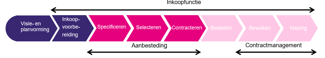 Het inkoopproces omvat meer dan alleen het aanbesteden van een werk, levering of dienst. Een inkoopproces begint met het in kaart brengen van behoeften en doelen. Op basis van de geschatte waarde van de opdracht en het inkooprisico (is er slechts één of een zeer beperkt aantal aanbieders), wordt de inkoopstrategie bepaalt. Daarbij wordt ook aandacht besteed aan het inbestedingsvraagstuk. Elk inkoopproces is uniek en vraagt om het maken van zorgvuldige afwegingen gericht op de specifieke situatie. In de paragrafen hieronder wordt hier nader op in gegaan.