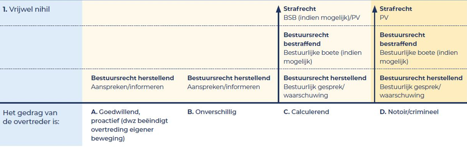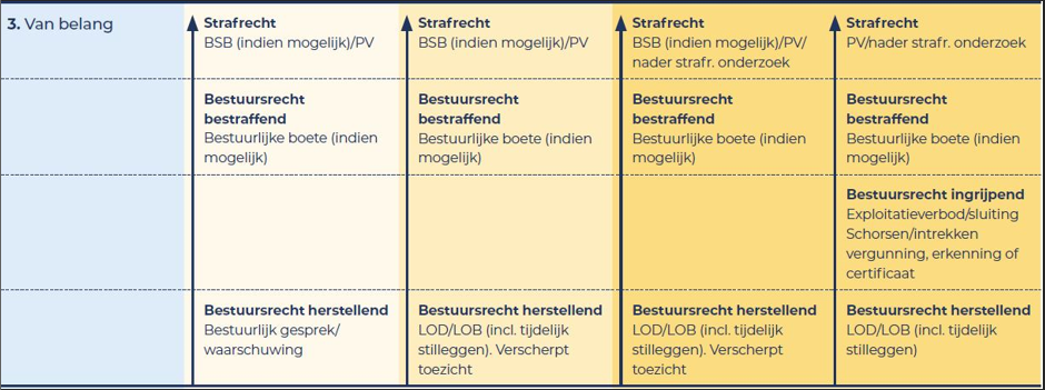 De handhaver gebruikt bij stap 4 de algemene of, indien beschikbaar en van toepassing, de domeinspecifieke interventiematrix. Dit werkt als volgt: