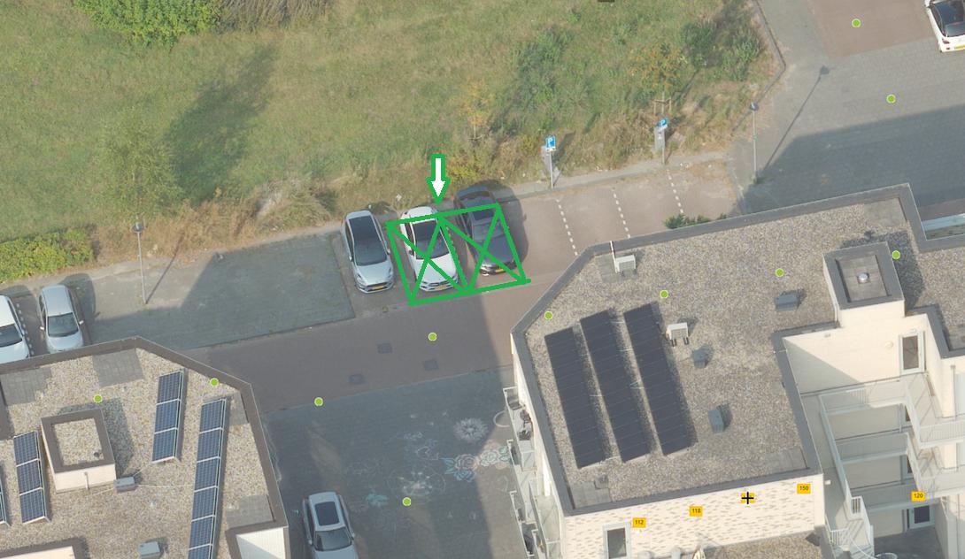 De parkeerplaatsen zijn alleen bedoeld voor het opladen van elektrische auto’s. Daarom plaatsen we het verkeersbord E08c (dit staat in bijlage I van het RVV 1990). We plaatsen ook het verkeersbord OB504 daaronder. Dit is een bord met twee pijlen die wijzen naar de parkeerplaatsen.