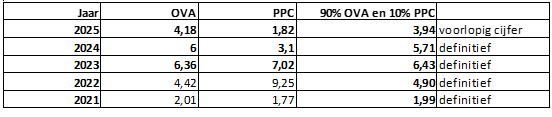 De tarieven worden jaarlijks geindexeerd op basis van de OVA/PPC.