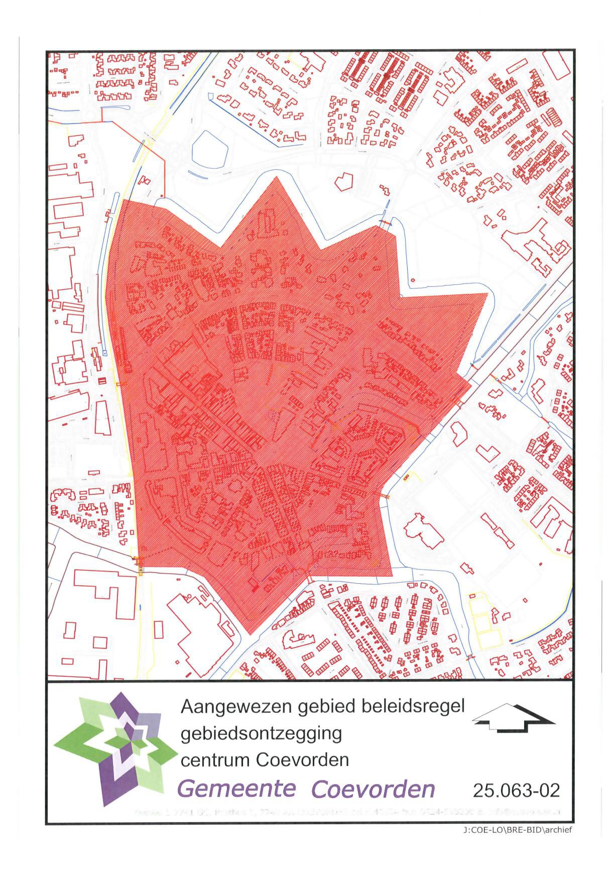 voor een gebied of meerdere gebieden van de gemeente Coevorden waarbinnen het strafbare feit en/of openbare orde verstorende handeling heeft plaatsgevonden. Dit gebied wordt in het besluit tot het opleggen van de gebiedsontzegging genoemd/ nader omschreven en als een kaart(en) als bijlage toegevoegd of