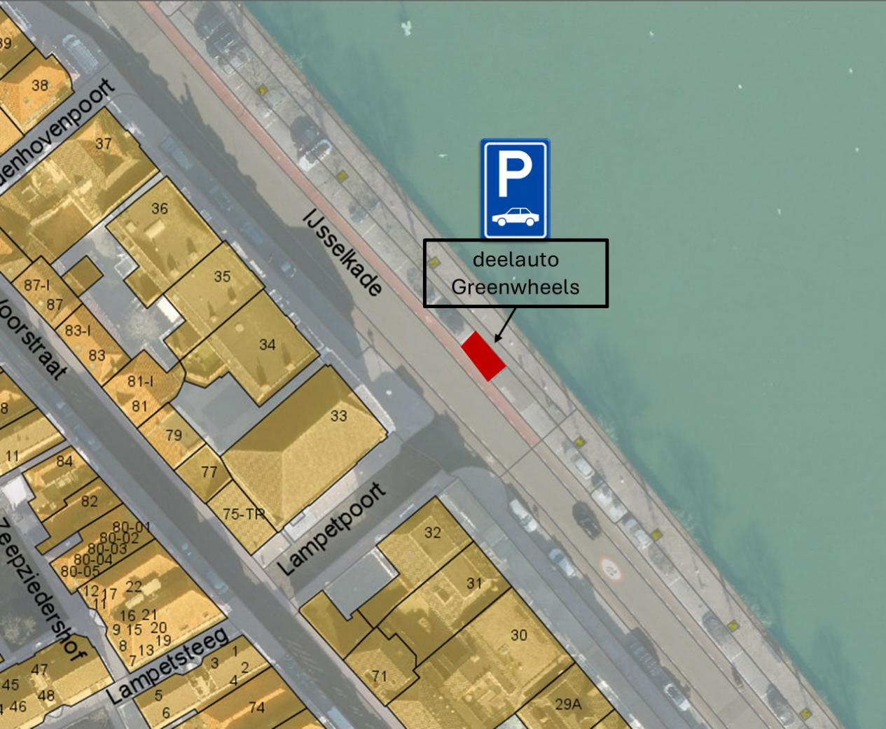 - door middel van het plaatsen van het verkeersbord E08 van bijlage 1 van het RVV 1990 met een onderbord met de tekst ‘deelauto Greenwheels’ – aan de IJsselkade aan de overzijde van IJsselkade 33, een parkeerplaats te reserveren voor een deelauto van Greenwheels.